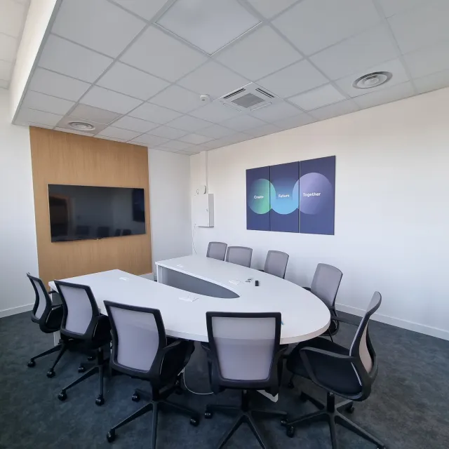 Nous avons dessiné des meubles fonctionnels au design épuré, restant dans la lignée de l’Expérience Center que nous avions conçu et réalisé en 2016 pour le groupe Smurfit Kappa.