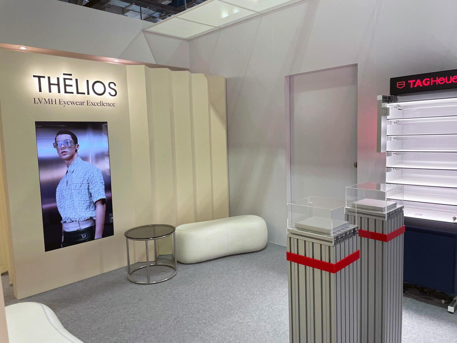 Thélios, fruit de la collaboration entre LVMH et Marcolin, a choisi de collaborer avec Them’s Concept pour la fabrication de leur espace, entièrement dédié à une sélection de grandes marques de lunettes. Ce concept, conçu en interne par l’équipe de la marque, a été méticuleusement mis en œuvre lors de l’événement TFWA Singapore par notre équipe. L’espace se distingue par son élégante simplicité, son style moderne et épuré qui met en lumière les produits tout en reflétant fidèlement la vision de la marque.